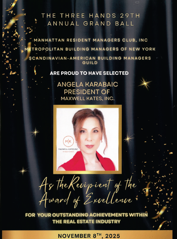 It was an inspiring evening with resident managers and vendors, our valued partners, whose support is essential to our work as property managers. Many Maxwell-Kates colleagues also joined, adding to the festivities. The Ball was hosted by Manhattan Resident Managers Club, Inc., the Metropolitan Building Managers of New York Inc., and The Scandinavian American Building Managers Guild.